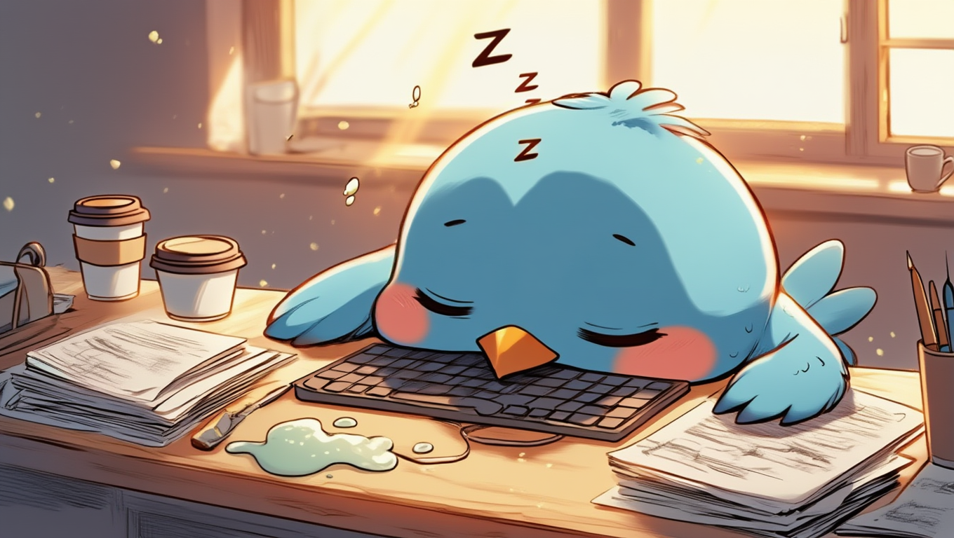 After an all-night translation marathon, our hero finally succumbs to sleep - but the work is done.